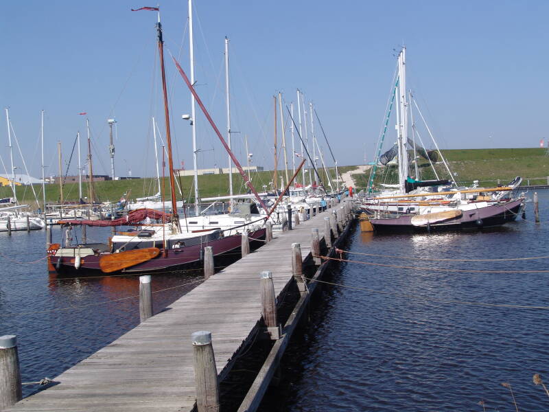 Bij terugkomst in Lauwersoog kijken we hier nog even wat rond en eten tenslotte nog even een heerlijk gebakken visje en fietsen daarna nog wat rond om vervolgens naar de camper te gaan. Zondag 21 april 1e paasdag stappen we tegen een uur of 11 op de fiets om eerst even te kijken op de rommelmarkt in Lauwersoog op het terrein bij de visafslag en een drukte van je welste. Tegen 12 uur vervolgen we onze weg voor de fietsroute langs het Lauwersmeer om vervolgens door te fietsen naar Zoutkamp. In Zoutkamp eten we een broodje met een heerlijk kop koffie erbij.
