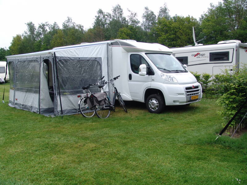 Vrijdag 17 mei vertrekken we naar Paasloo Camping de Eikenhof waar we gaan deel nemen aan de fiets week Weerribben. Tegen de middag komen we aan schrijven in en zetten de camper op zijn plaats en daarna eten we eerst een broodje.