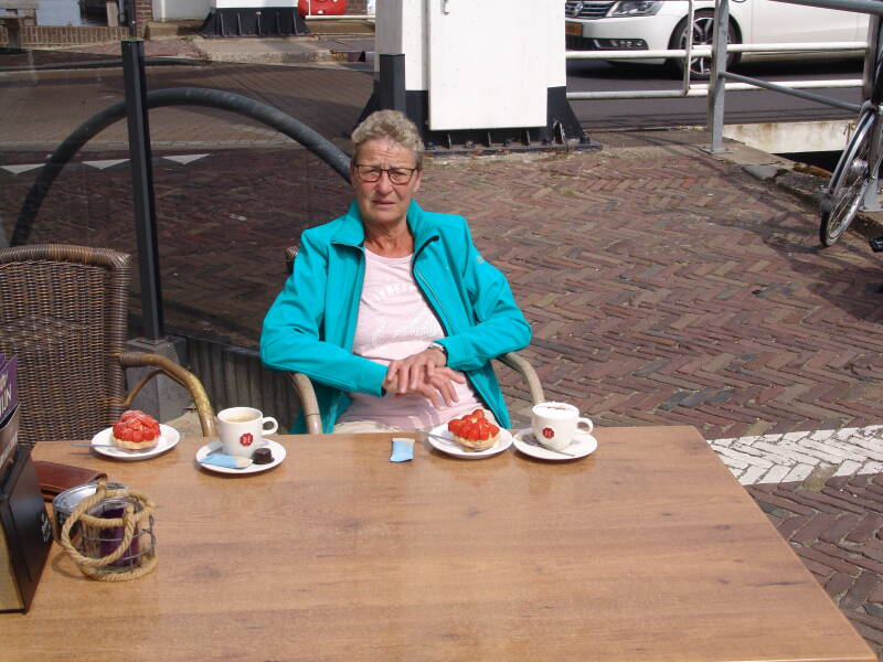 Zaterdag 18 mei na het ontbijt en kleine werkzaamheden nemen we de fiets en fietsen even naar het dorp Oldemarke waar we op diverse locaties borden zagen staan schuur verkoop en dat vinden we altijd wel leuk even neuzen tussen oude spullen. Zondag na het ontbijt en de afwas nemen we tegen een uur of elf de fiets om een mooie fietstocht te maken. We starten in Paasloo richting Oldemarke, Ossenzijl waar we een lekkere kop koffie met koek en aardbeien.
