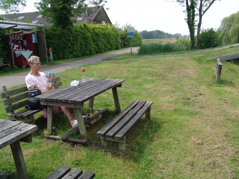 via Giethoorn fietsen we richting Jonen waar we tegen 12.30 even pauzeren om een broodje te eten. In Jonen nemen we een pontje om aan de overkant van de wieden te komen om vervolgens weer via Weteringen naar Paasloo te fietsen.
