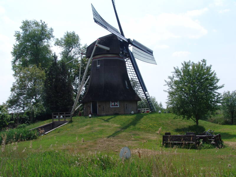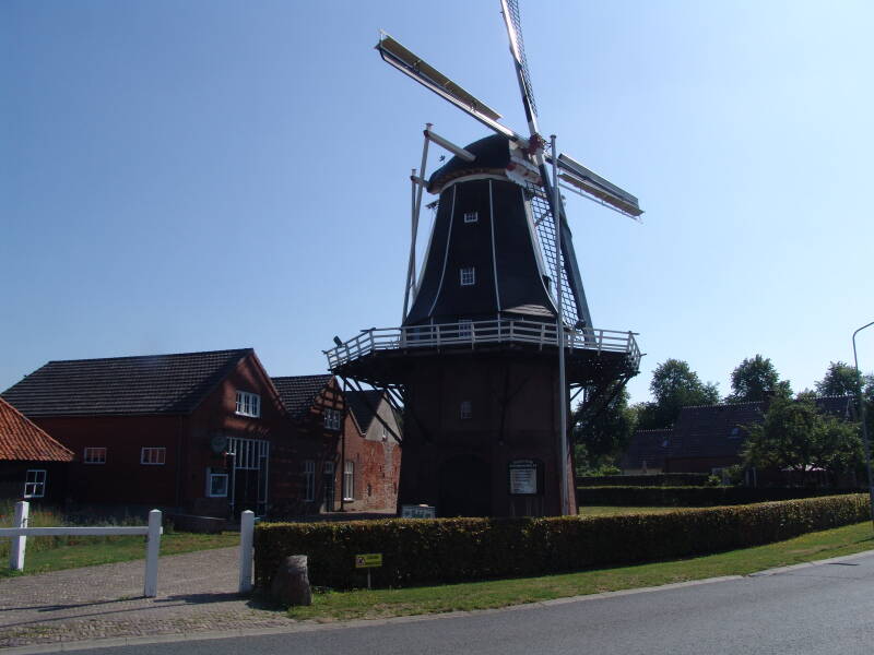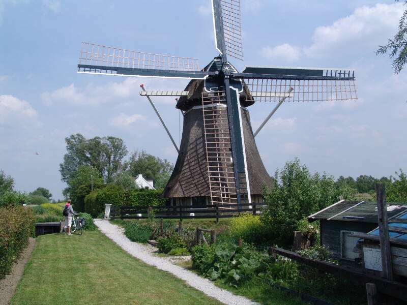 Na de lunch even na 13.00 uur vervolgen we weer onze route en komen even later uit bij de koren molen, bezichtiging was mogelijk en dat deden we dan ook en het is leuk om te zien hoe het vroeger ging.