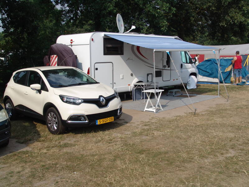 Zaterdag 27 juli vertrekken we tegen een uur of 10 naar Emmen waar we onze dochter treffen met gezin om vervolgens door te reizen naar Camping de Twee Bruggen te Winterswijk. Even na 12 uur waren we op de camping, aanmelden ging snel en konden we ons installeren op de door ons gereserveerde plaats.