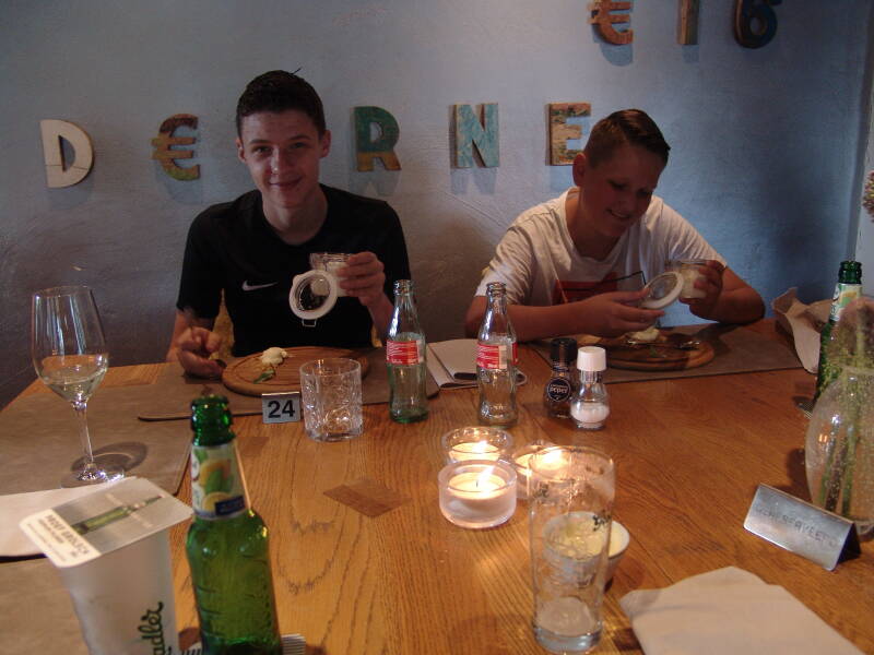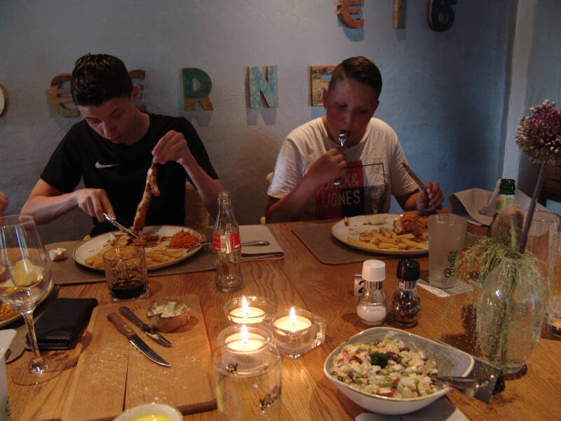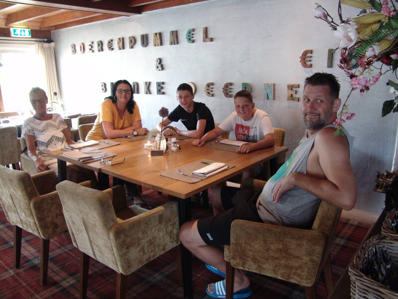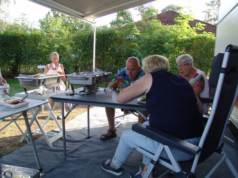 Nadat alles op zijn plaats stond gaan we tegen 17.00 uur gezellig uit eten op de camping in het gezellige restaurant.