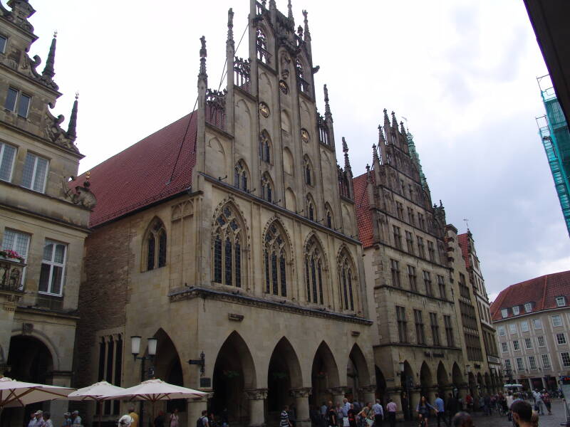 Na de koffie wandelen we naar het oude centrum van Münster met zijn mooie grote oude gebouwen en kerken.