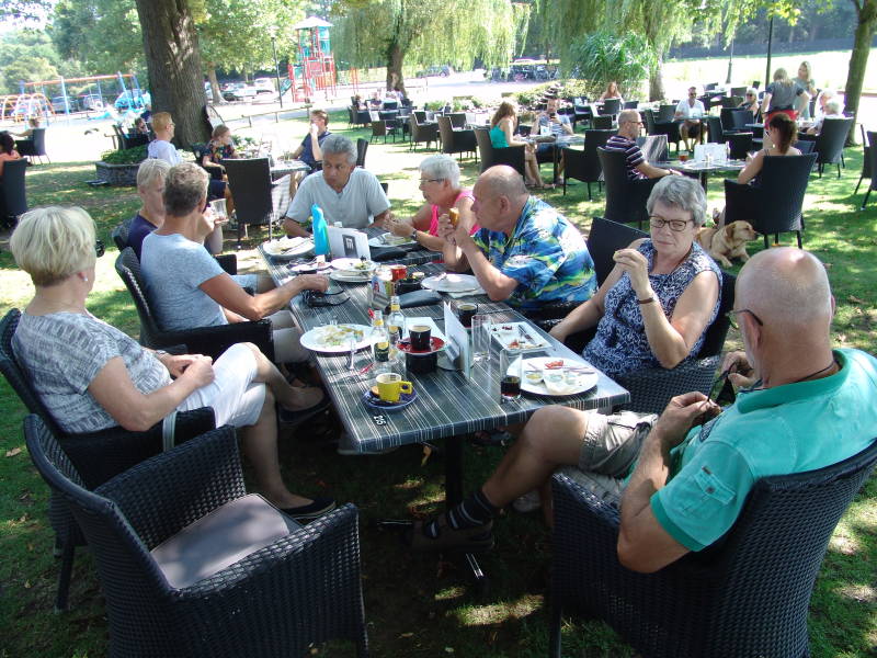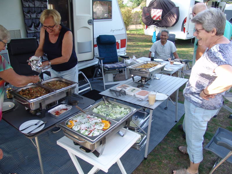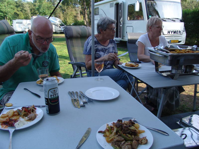Vrijdag 30 augustus na de middag arriveerden de eersten van de club en tegen 15.00 uur is iedereen aanwezig. Drinken een heerlijk kop koffie of thee met eigen gebakken keek van Rita. We praten wat gezellig met elkaar over vakanties tijdens onder een genot van een drankje. Even na 18.00 wordt de warme maaltijd bezorgd en daar wordt gretig gebruik van gemaakt, heerlijk.