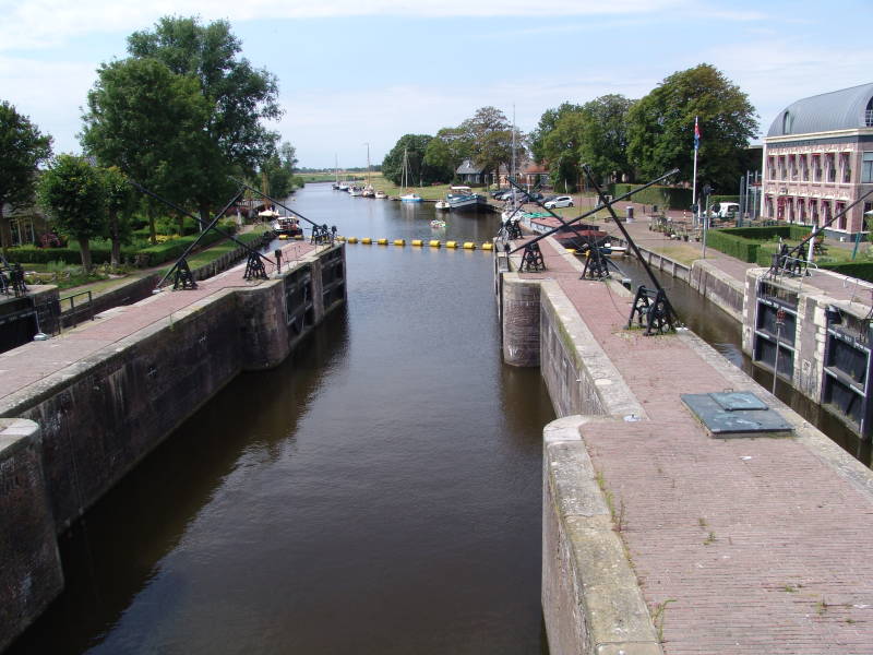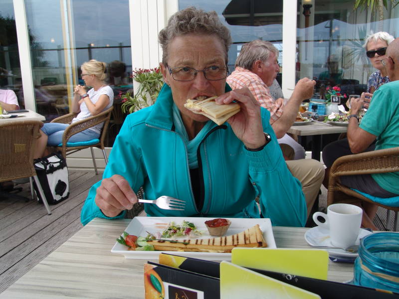 Na de tweede kop koffie nemen we afscheid van elkaar en vervolgen we weer onze eigen weg. De imposante sluis uit 1729 bepaalt samen met de huidige sluis het gezicht van de voormalige zeehaven. Na 20 km komen we uit in het gehuchtje Ezumazijl gelegen aan het Lauwersmeer en het is inmiddels al bijna 13.00 uur en gaan eerst maar een broodje eten bij Restaurant de Gouden Stek.
