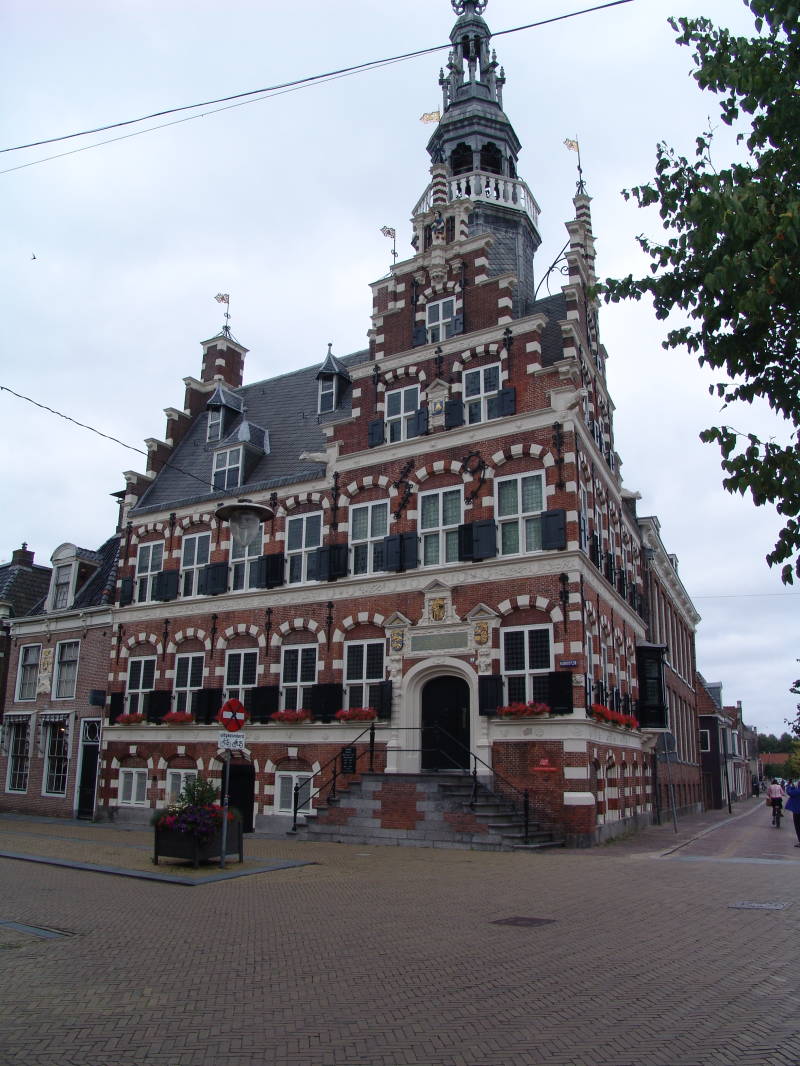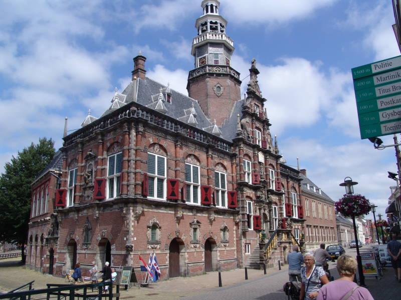 Na de koffie wandelen we door Franeker met zijn mooie gemeentehuis en de mooie grachten die door de oude binnen stad lopen. Franeker is niet zo groot en we zaten dan ook na 45 minuten dan ook al weer op de fiets richting Bolsward. Aangezien Bolsward nog wel heel wat kilometers van Franeker ligt zo'n dikke 30 km maken we ons op voor deze rit en fietsen door natuur, openvelden