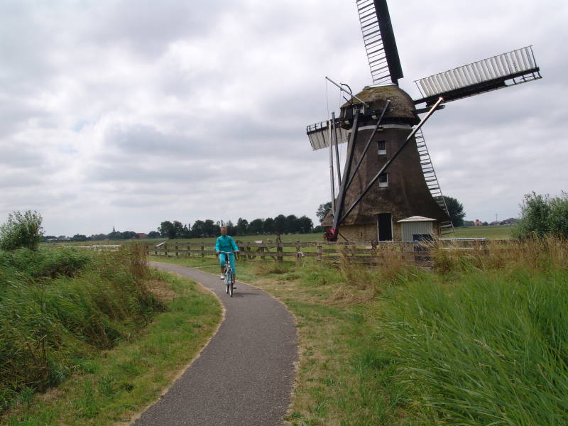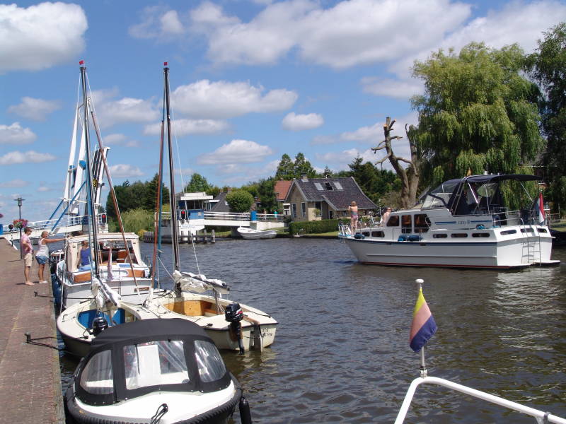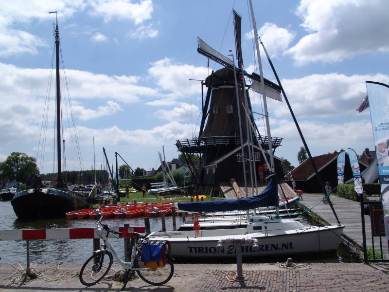 Aangezien we eerst zeiden dat we een rustdag zouden nemen gingen we tegen 14.00 uur toch nog maar een kleine fietstocht maken naar Woudsend. Het was enorm druk in Woudsend en zetten onze fiets bij de spar en wandelen eerst naar de haven en wat een drukte, langs de menigte wandelen we door langs de wateren naar de ophaalbrug, als je hier in het dorp woont kun je beter de auto buiten het dorp zetten, om de 5 minuten gaat de brug open wat voor een enorme opstopping zorgt, we lopen door naar de molen bezichtigen deze en weer terug naar de fiets en doen nog een paar boodschappen.