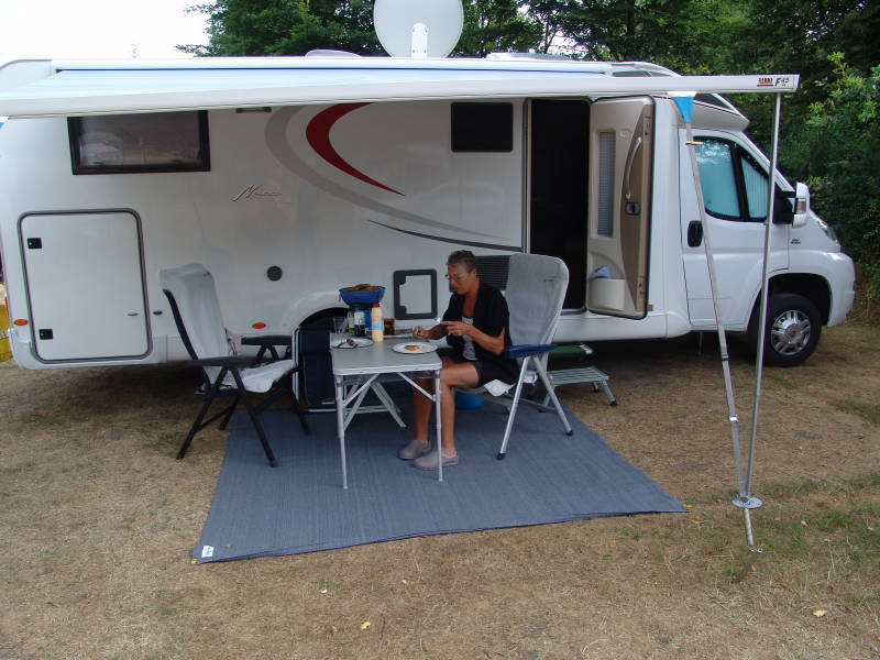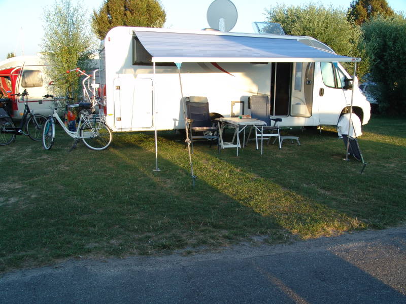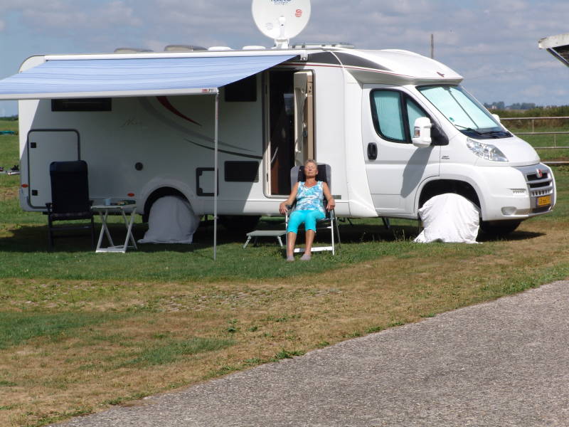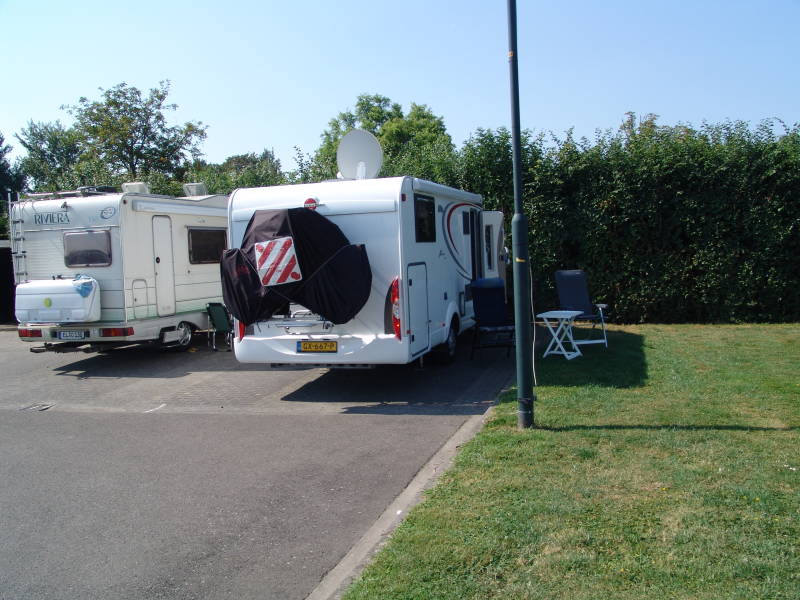 Aanmelden en de camper op zijn plaats luifel uit want het begon wat te regenen en het was dan ook even lekker koel. Na de middag tegen 14 uur was het droog en besloten we nog even naar het centrum van Naarden te gaan, fietsen langs de vesting muur van Naarden en doen nog wat boodschappen, kijken nog even bij de kringloop winkel en dan weer door naar de camper.