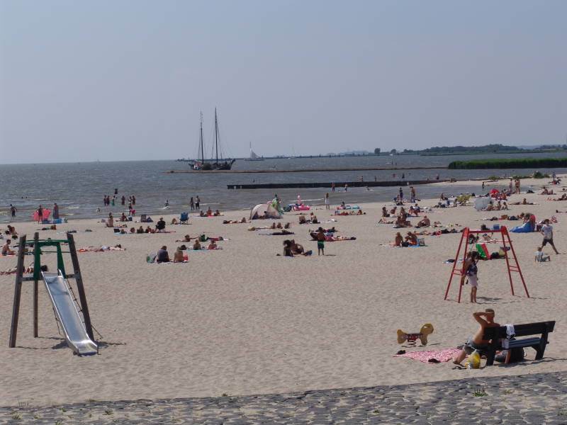 Na de middag wandelen we vanaf de camperplaatsnaar het oude stadscentrum van Lemmer ongeveer 800 meter. Drinken in Lemmer een borreltje en dan komen de mooie boten voorbij varen. Op de terugweg lopen we langs het Lemmer Strand waar het druk is, maar wat wil je met dit mooie weer. Onze kleinkinderen zouden zich hier best vermaken. Lemmer is ook leuk maar Sneek heeft bij ons de voorkeur.