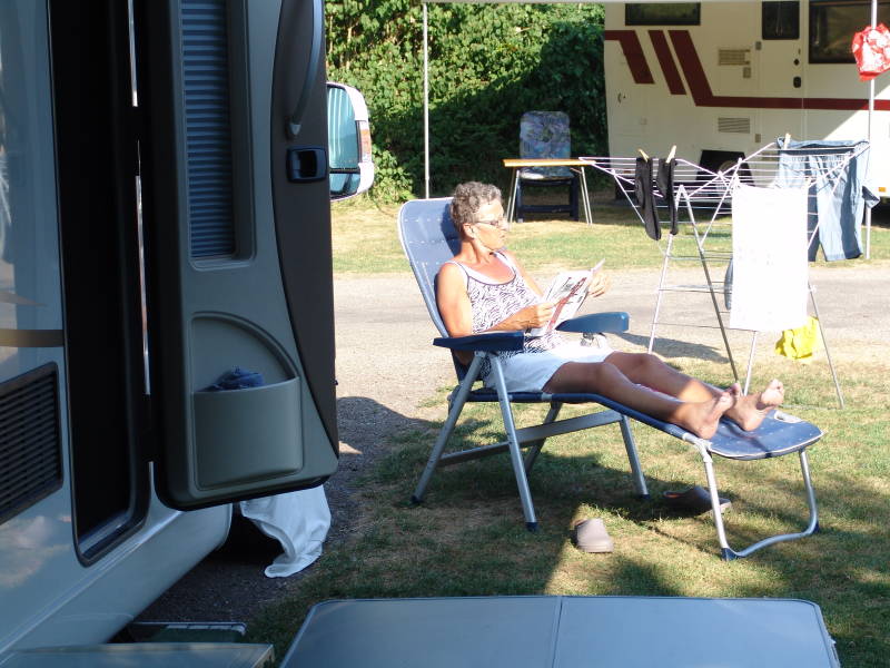 Zondagmorgen 22 Juli 2018 maken we een wandeling vanaf de camping langs het Ijsselmeer en nemen een rustdag, Marie geniet volop van de zon.