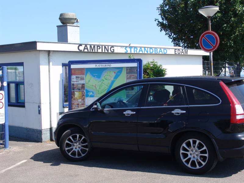 Maandag morgen 23 Juli 2018 verlaten we rond de klok van 10 en rijden ook dit keer weer via de N wegen de N302, N506, Wijdenes, Blokker via de ventweg langs de A7 en dan via de N247 Scharwoude, Oosthuizen naar Edam de Parel van Holland. Tegen een uur of 11 waren we bij Camping Strandbad Edam, melden ons, camper op zijn plaats en tijd voor koffie. Afstand Enkhuizen-Edam 41 km.
