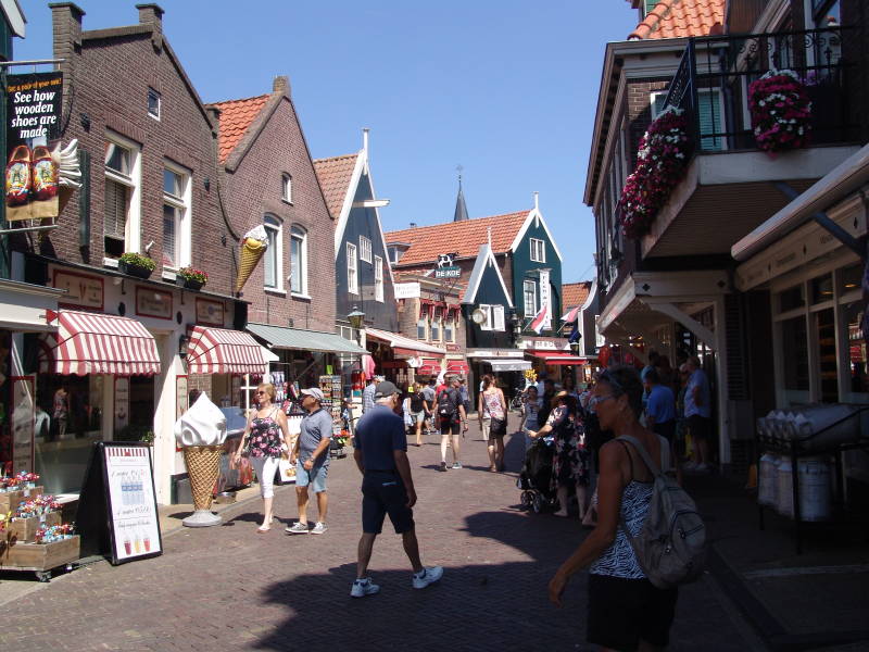 Ook fietsen we nog even van Edam naar Volendam over een afstand van 5 kilometer. Toen we Volendam binnen fietsen was het enorm druk van toerisme o.a Vietnamezen, Chinezen etc. etc. Volendam heeft veel terrasjes en souveniers winkels.