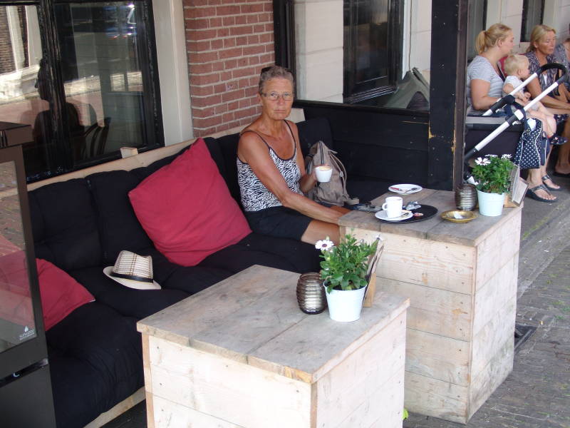 Woensdag 11 Juli na het ontbijt fietsen we de Bonifatius route en fietsen langs het Grootdiep naar Dokkumer Nieuwe Zijlen en op een splitsing komen we een echtpaar tegen die we in 2006 hebben leren kennen op camping SeeBlick Toni te Oostenrijk wat een toeval dan maar even lekker met elkaar een lekker kopje koffie drinken bij de Herberg de Pater en even weer bij praten.
