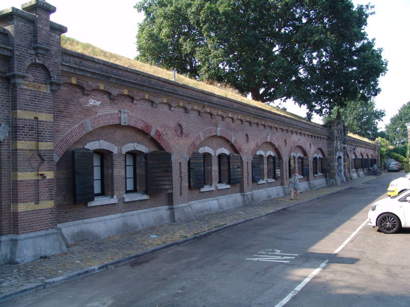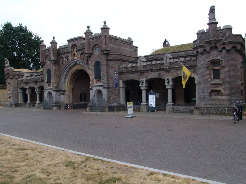 Donderdag 26 juli 2018 besloten we na de koffie tegen half 11toch nog maar i.v.m. de hitte toch nog maar even een fietstocht te maken. We fietsen van uit Naarden langs de vestingstad en langs de Promers Kazerne en bunkers. De oude kazerne doet nu dienst als winkeltjes, kapsalon en diverse galerieën.