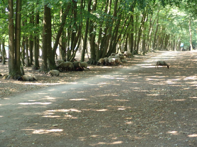 We vervolgen onze weg door het Naarder bos en langs het Naarder meer richting Huizen drinken in Huizen een kop koffie, na de koffie fietsen we verder stukje door Huizen, Crailo en langs Blaricum richting Bussum en via Tafelberg en Trappenberg door het bos langs de schapen naar Naarden en langs de vesting muur weer naar de camper. Mooie route door het bos en de warmte viel mee. 29 km gefietst vandaag.