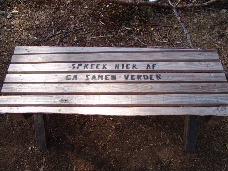 Wat op het bankje staat hebben we na de pauze dan ook maar gedaan en vervolgen ons weg door het prachtige natuur gebied van de Utrechtse Heuvelrug en na 23 km was er gelegenheid voor een kop koffie bij restaurant Sanderburg. Na de heerlijke kop koffie met vruchten gebak vervolgen we onze weg door een gedeelte Sanderburgbos richting Rijsenburg, stukje centrum Zeist en vervolgens langs de herten wei weer naar de camper. Tegen half 3 weer bij de camper, fietsafstand 41 km.