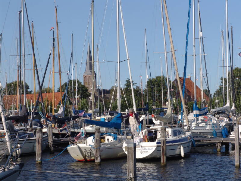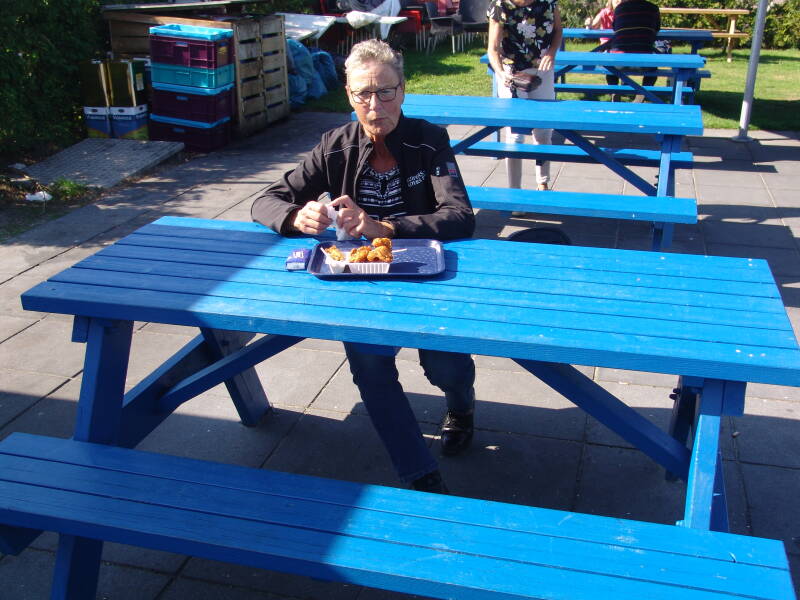 Na de middag pakken we de fiets en fietsen langs de IJsselmeer naar Stavoren. Echter in Stavoren is veel toerisme en dat komt mede door de elf steden tocht. Weinig te beleven. We eten even bij de visboer een bakje kibbeling.