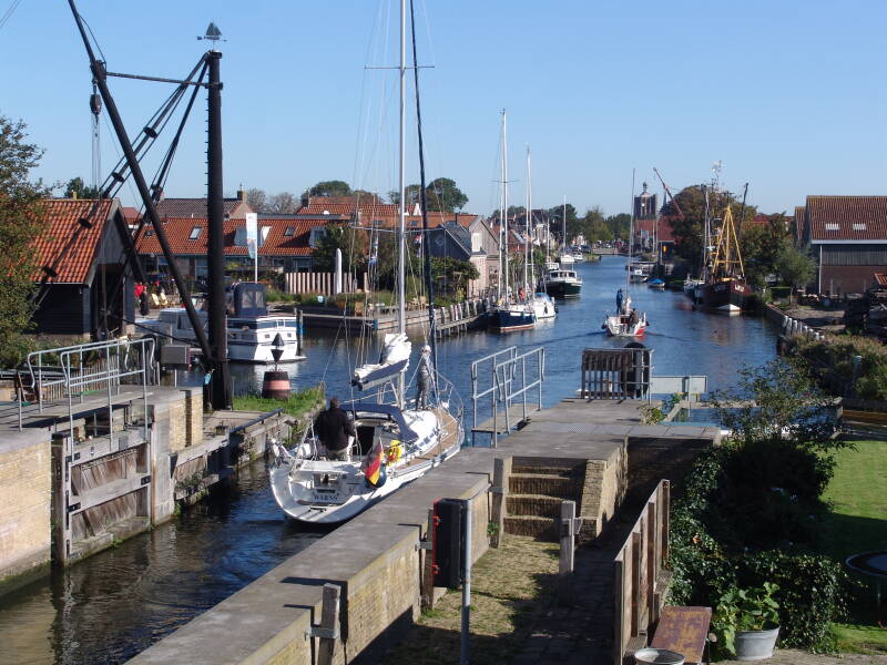 Er zijn twee sluizen in Stavoren die de scheepvaart van en naar het IJsselmeer begeleiden namelkijk de Johan Frisosluis en de sluis Stavoren. Stavoren is de poort van Friesland en het begin om de Friese meren op te gaan. Aan de wal kant prachtige mooie oude zeilboeten.