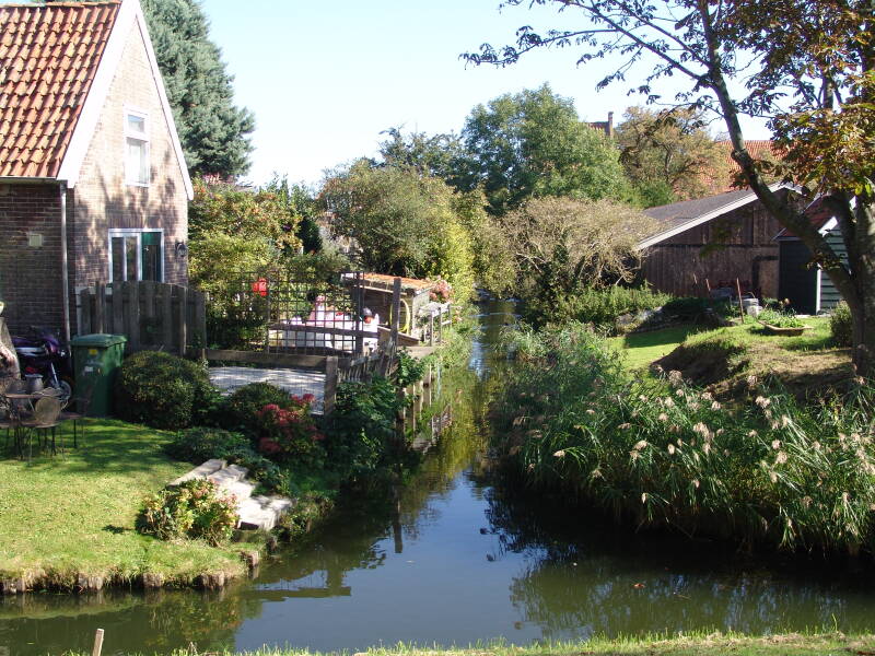 Vanuit de kerk wandelen we weer verder door de goed geordende doolhof van oude straten, grachten en houten bruggen.