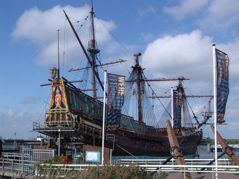 Ook nemen we nog even een kijkje bij de oude VOC schepen waarvan er één rondom in de steigers staat voor renovatie en zo te zien duurt het nog wel even voor dat die klaar is. De renovatie wordt allemaal gedaan door vrijwillegers ,ook kan men een rondleiding krijgen door VOC schip tegen betaling voor onderhoud van de schepen. Indrukwekkend om dit te zien.