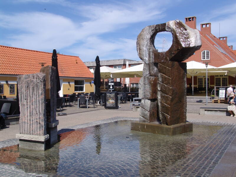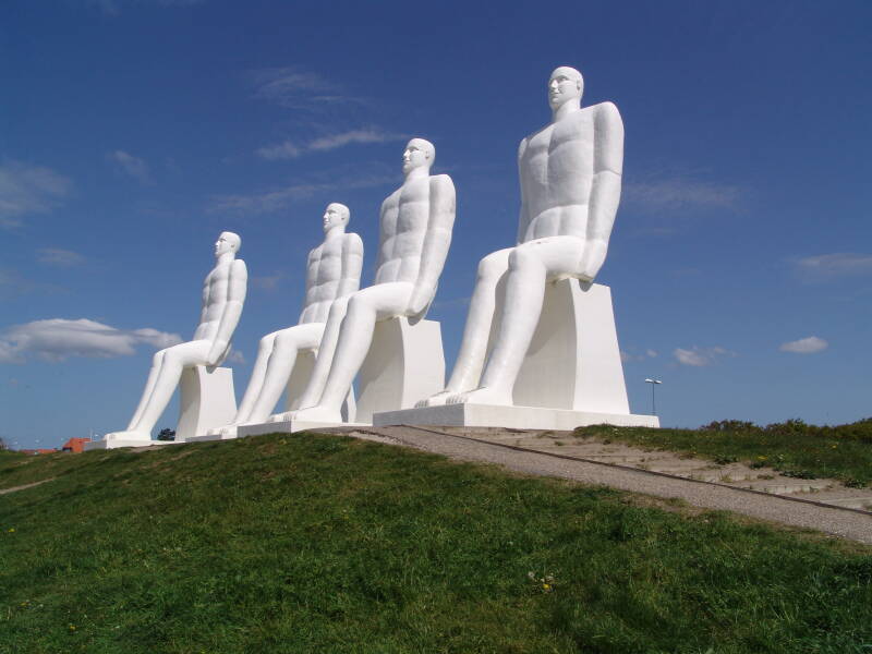 Vanmorgen zaterdag 20 Mei 2023 nadat we met het mooie weer buiten hadden gegeten stappen we tegen half 11 op de fiets voor een tocht langs het strand van Esbjerg waar we na ongeveer 6 km vier grote witte beelden zien staan. Aangezien het allemaal in het Deens geschreven staat toch maar even Googelen wat dit te beteken heeft. Na dat we foto's hebben gemaakt fietsen we nog door naar het centrum van Esbjerg, mooie centrum maar met heel veel leeg staande winkelpanden. Volgens Google zijn De vier witte mannen aan zee een 9 meter hoog sculpturengroep in de Deense stad Esbjerg. Het werd ontworpen door beeldhouwer, schilder en graficus Svend Wigtlansen. De sculpturen zijn gemaakt van wit beton en protrettreerd vier zittende mannen die uitkijken over het water van de wadden zee. De beelden zijn onder ander geinspïreerd op de moal van Paaseiland en beeld de pure en onbedorven man uit de ontmoeting met de natuur in de volksmond wordt het kunstwerk ook wel de 4 hvide genoemd of te wel de vier witte mannen. In het oorspronkelijke ontwerp uit 1954 had de kunstenaar de beelden willen plaatsen op Grenen het noordelijkste punt van Denemarken, maar dit plan werd nooit gerealiseerd. Uiteindelijk werden de beelden gebouwd ter gelegenheid van de honderdste verjaardag van de gemeente Esbjerg in 1994.