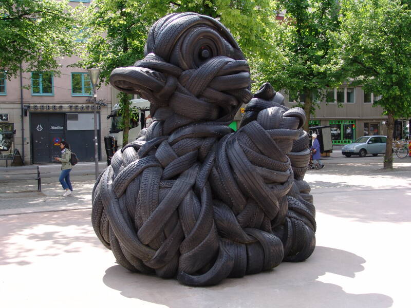 en een mooi stuk kunstwerk gemaakt van auto banden en het park is ook keurig aangelegd.