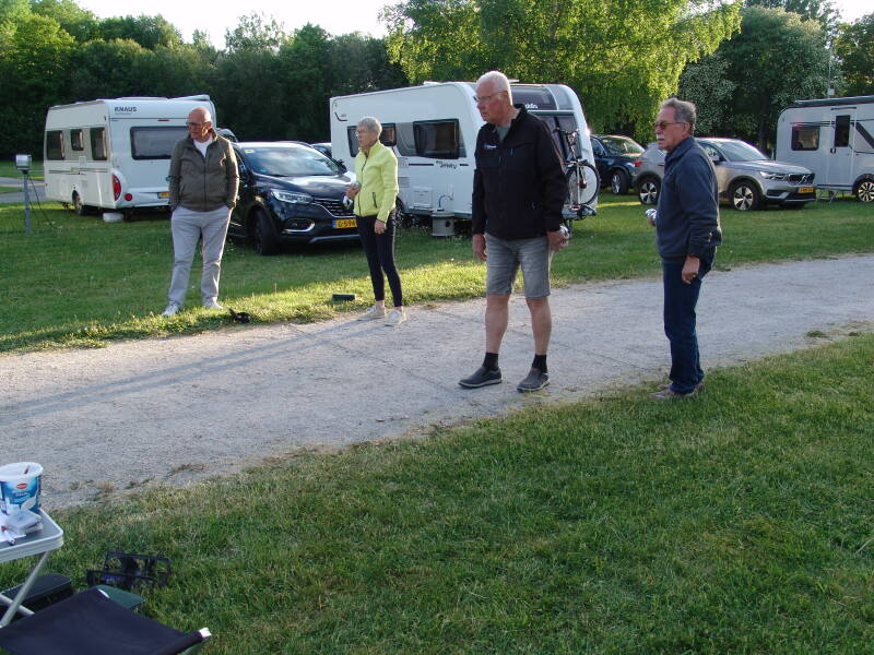Zondag 4 Juni ook geen verplichtingen en maken we na de middag een wandeling langs het meer en aangezien het behoorlijk warm was is een verkoeling langs het water wel lekker. Weer terug bij de camper moest ik mij mentaal voorbereiden op de Jeu de Boulles.
