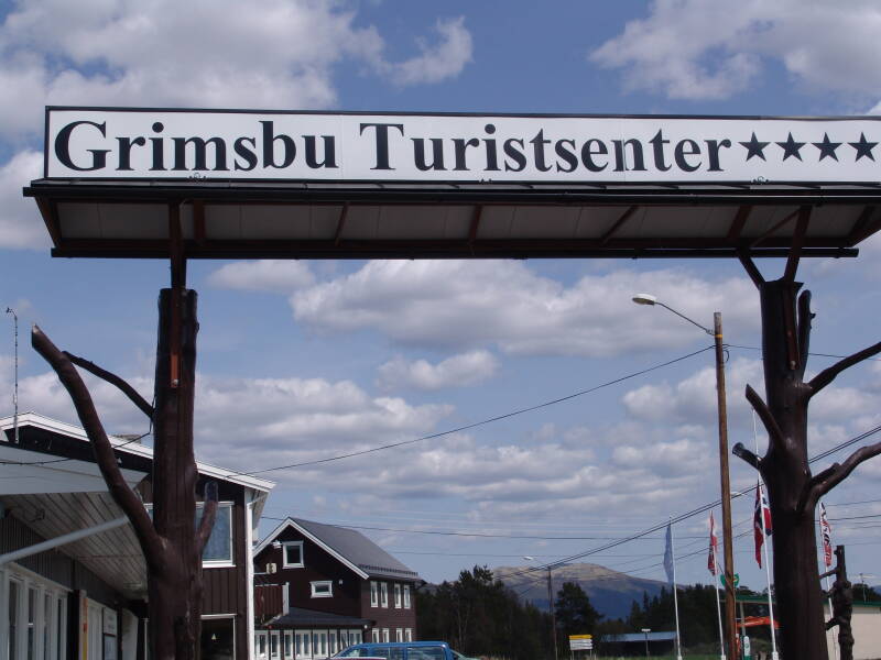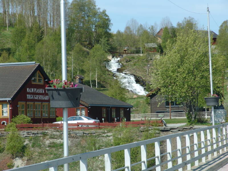 Vrijdag 9 juni rijden we naar Noorwegen naar camping Toeristencenter te Grimsbu over een afstand van 218 km. Na 40 km passeerden we de Noorse grens waar we 70 km hadden met slecht wegdek, In het plaatsje Tolga hebben we wat boodschappen gedaan. Verderop tijdens onze rit veel watervallen.
