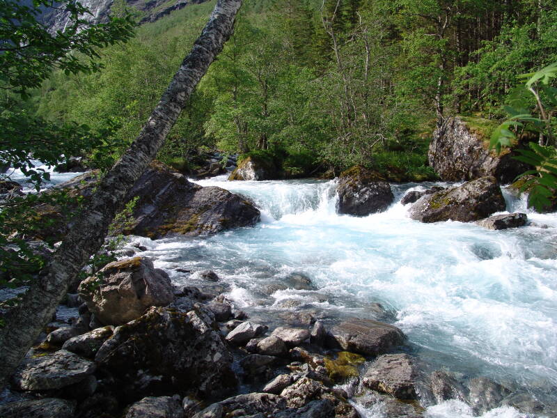 Na de koffie vervolgen we onze weg richting Briksdalbreen naar het plaatsje Briksdal waaar we veel tunnels zijn gepasseerd variërend van 3 tot 9 km. Via Funn-Hunde rijden we naar Boijum naar het Gletsjermuseum