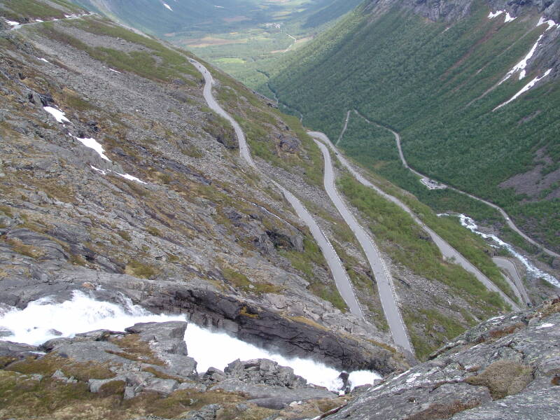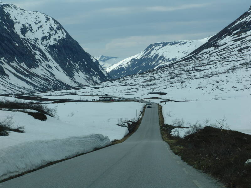 Zondag 11 Juni rijden we met Bert en Anja tegen een uur of elf de Trolstigen route ( Trolroute ). Met veel stijgingen en dalingen. Er waren plekken bij waar nog veel sneeuw lag.
