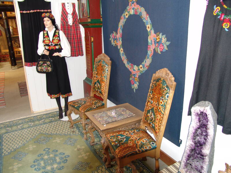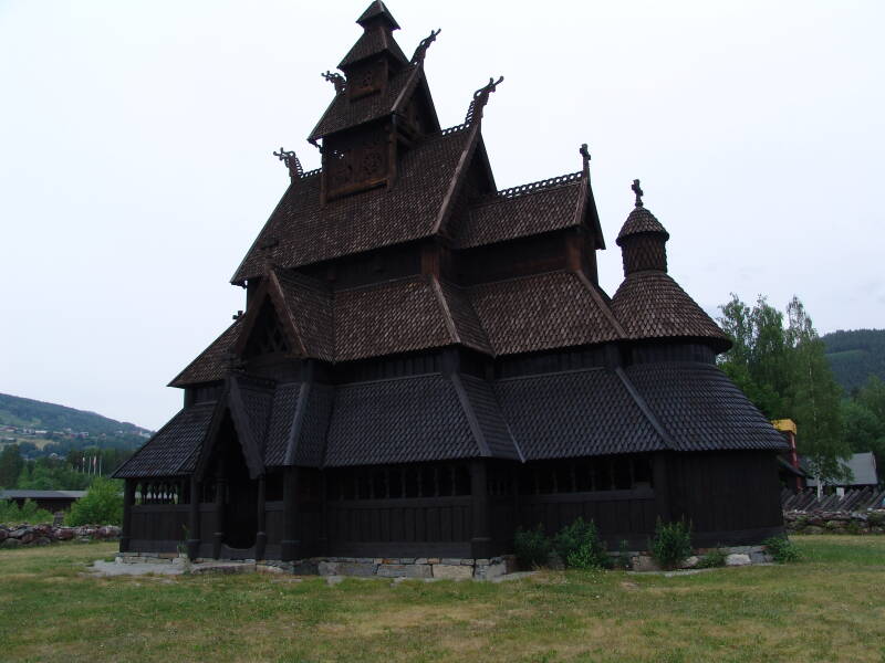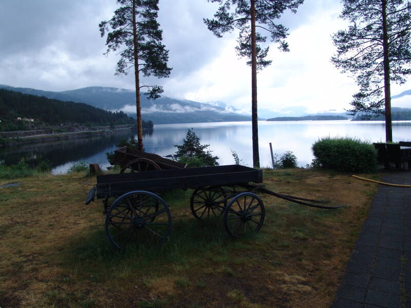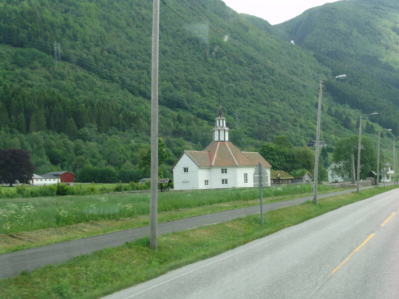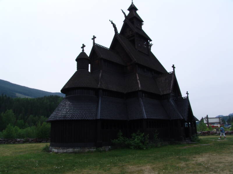 Na het ontbijt tegen een uur of elf nemen we de fiets en maken met Onne en Trienke een fietstocht door Gol. Doen in Gol nog wat boodschappen en fietsen door naar het openlucht museum van Gol waar de houten Staafkerk van de Vikkingen uit de 12e eeuw.