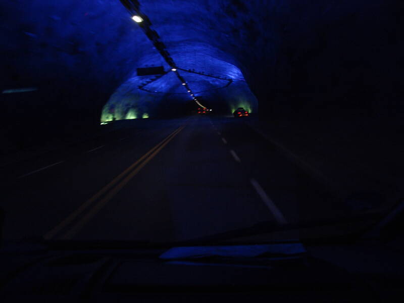 Nahet bezoek aan het museum rijden we door naar het plaatsje Kavpanger waar we met de boot over gaan naar Leardal. Het gebied heet ook Leardal. Nadat we de boot hebben verlaten kwamen we na enkele kilometers door Leardalstunnel van 24,5 kilometer lang en om de 6 kilometer hebben ze blauw daglicht gecreëerd zodat de de bestuurders niet in slaap konden vallen. Mooi om te zien.