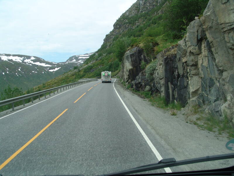 Zaterdag 10 juni wederom een reisdag van Grimbu naar Andalnes naar camping Mjelva over een afstand van 175 km. Dit keer wederom een fantastische route die door dalen, langs meren en veel watervallen ging.