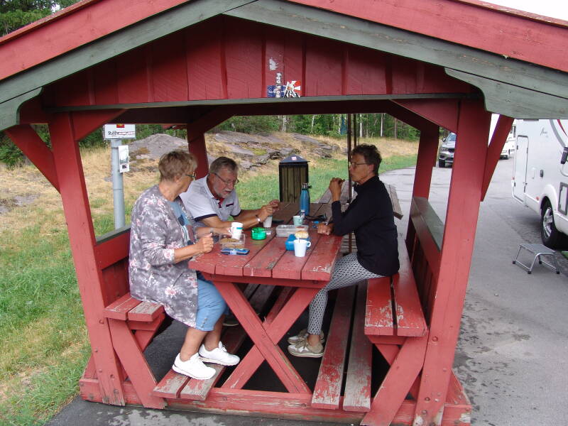 Tegen 16.00 uur kwamen we aan op camping Gustavsik Resort een nette camping. Om 17.00 hebben we een borreluurtje bij Han en Door en na de borrel tijd voor een lekker bord warm eten.