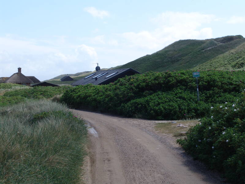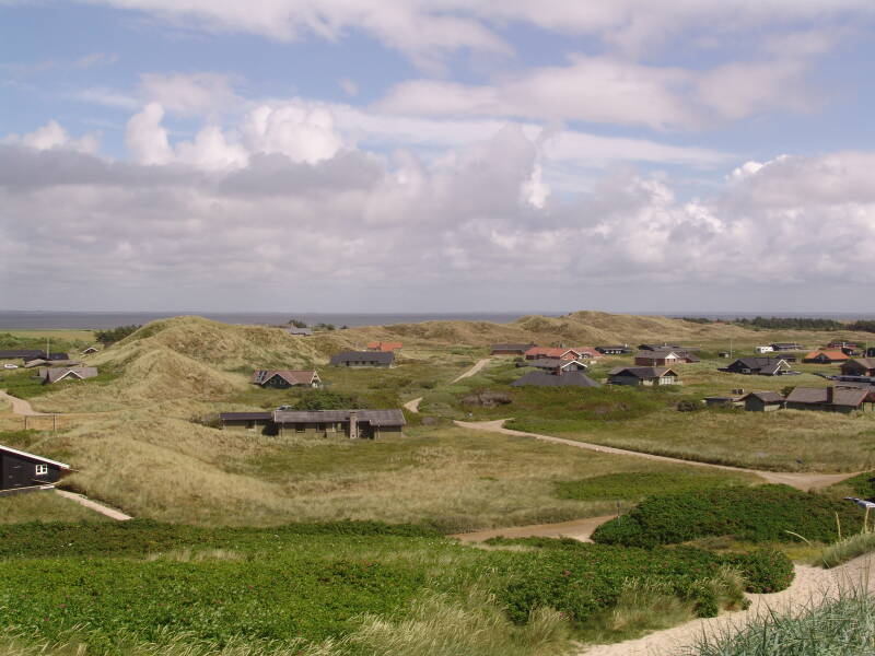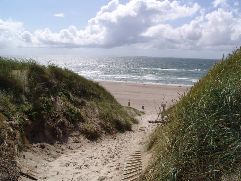 Zondag 25 juni verlaten we Skagen en rijden Hvide Sande aan de westkust over een afstand van 378 km. Bij aankomst op de camping melden we ons en mochten zelf een plekje uitzoeken, plaats genoeg. Vandaag tussen de duinen mooi weer,