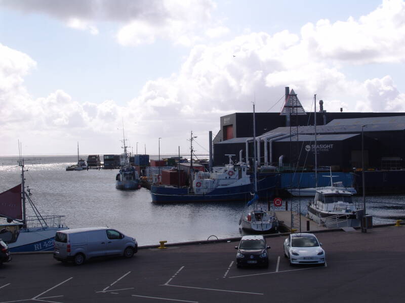 Na een stevige storm afgelopen nacht is het nu weer rustig en pakken we de fiets en fietsen vandaag dinsdag 27 juni naar Havide Sande een vissers dorpje met een grote haven en een vis afslag.