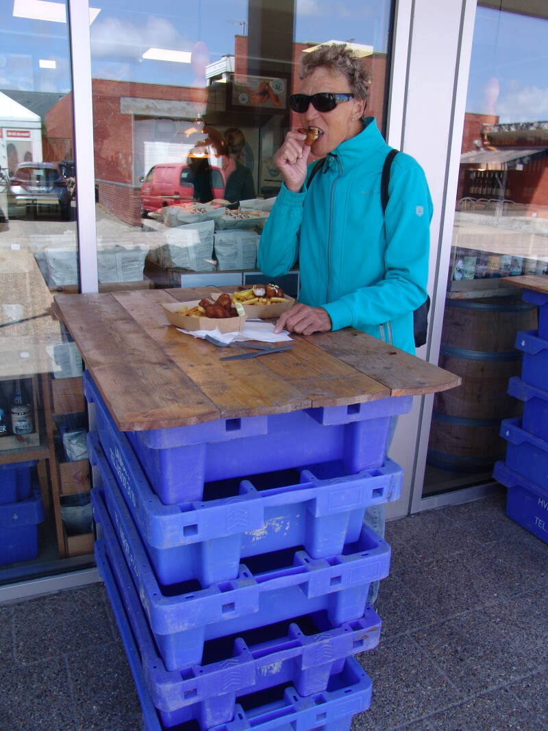 We eten hier een bakje kibbeling mm lekker hoor en doen nog wat boodschappen en gaan dan weer richting de camping.