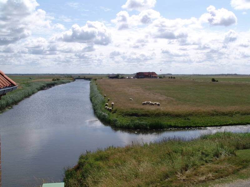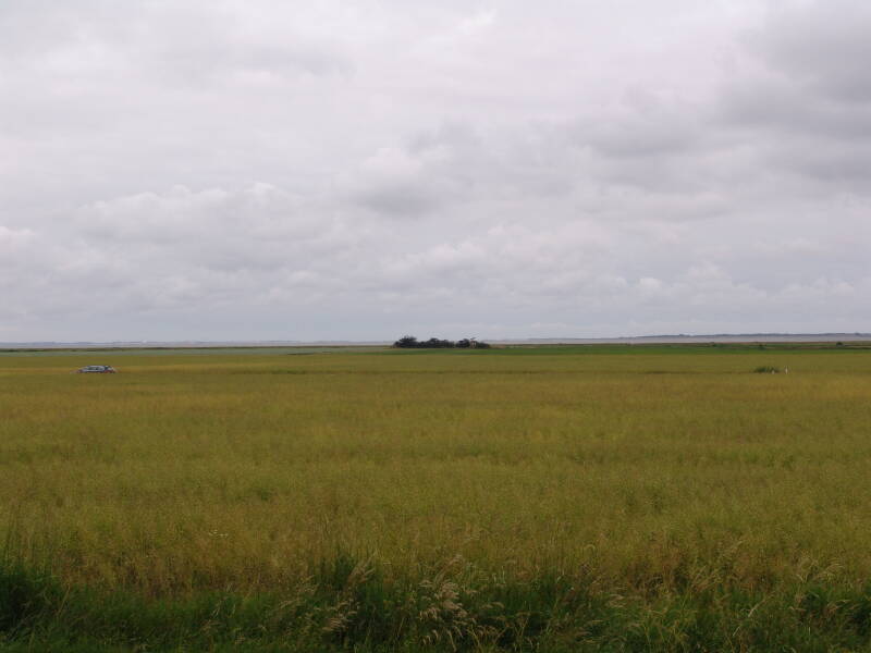 Vrijdag 30 Juni fietsen we tegen een uur of elf richting Ballum Vesterende door het dorpje voorbij de kerk naar de dijk en fietsen 9 km langs de dijk