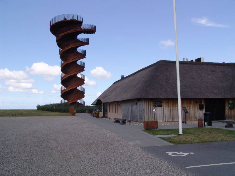 We fietsen richting Skarerbaek en zien daar een hoge uitkijktoren de Marsk Tower staan bij een camping en camperplaats die ook de naam Marsk Camping heeft. In het restaurant bij de camping drinken we een kop koffie. op de terug weg richting de camping maken we gebruik van een diner bij een weg restaurant. Kijken nog even door het kleine raampje naar buiten en bij terug komst op de camping ligt de duif al weer op ons te wachten. 30 km gefietst.