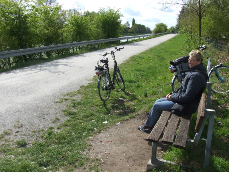 Vrijdag 14 april na het ontbijt nemen we de fiets en maken een fietstocht langs het Dordmunder Emskanaal richting de Oostkust naar Dordmund om daar te komen was het een hele tocht en we fietsen heen en terug zo'n 44 km een mooie tocht voor vandaag met redelijk goed weer.