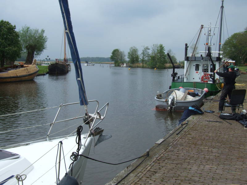 In het zonnetje was het goed te doen, maar als de zon weer weg was moest jasje wel even weer aan. Vanaf de camperplaats zie je de boten voorbij varen en zelf eentje vlak bij ons uit de buurt.