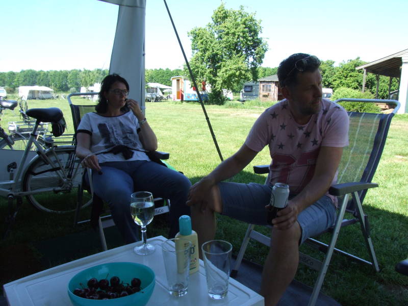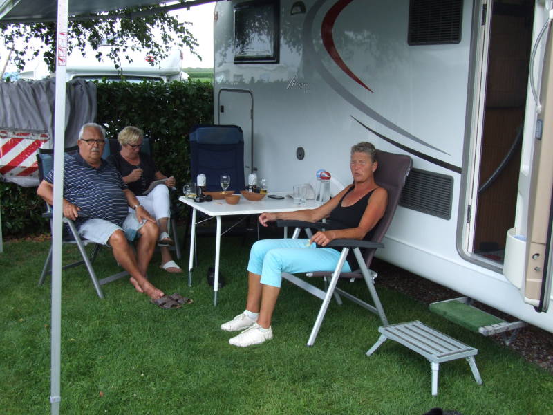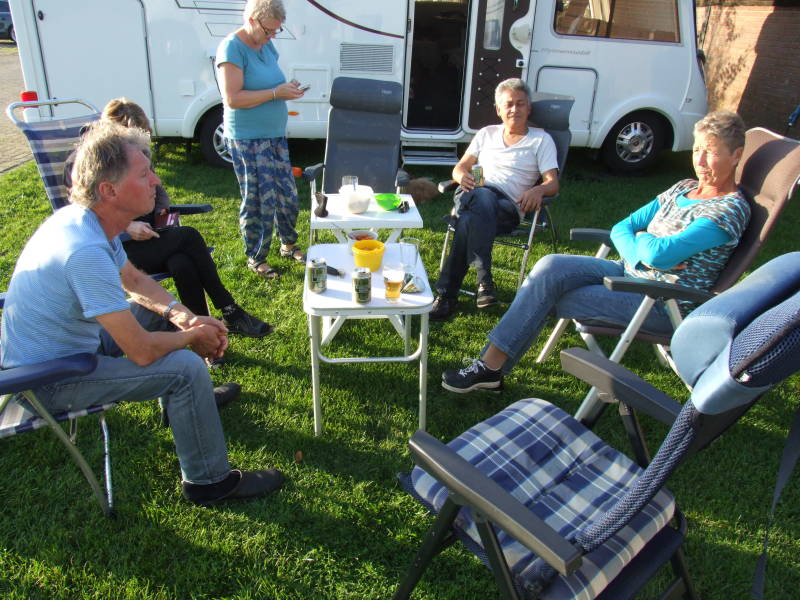 Bij terug komst op de kampeerhoeve genieten we nog met zijn allen van het mooie weer onder het genot van een drankje. Heerlijk.