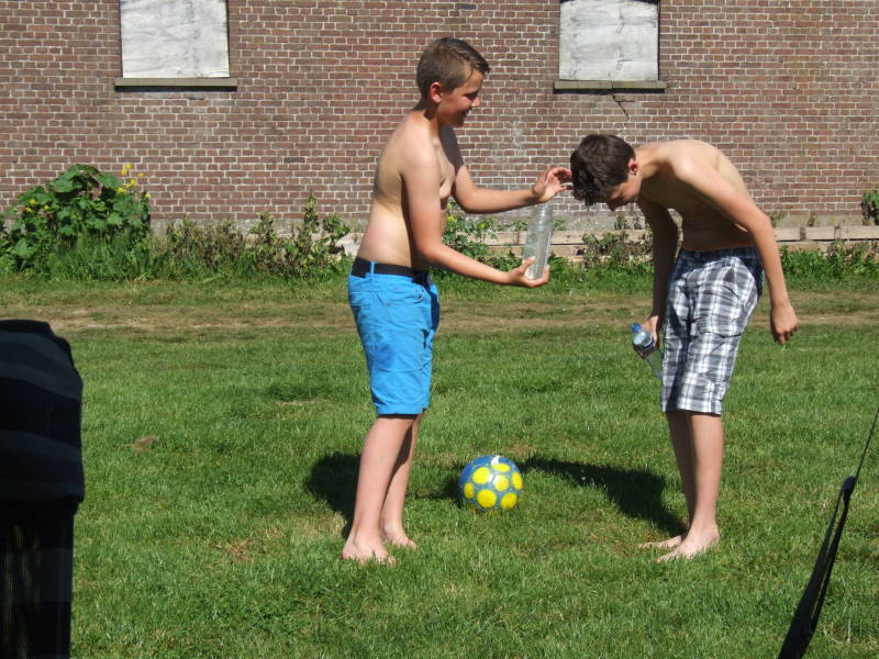 Tegen 13.45 stonden we op onze plaats en de kinderen kunnen hun gang gaan en dit weekend was het dan ook voetballen en zwemmen. Fijn dat de jongens genieten en dan genieten wij ook.