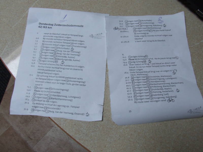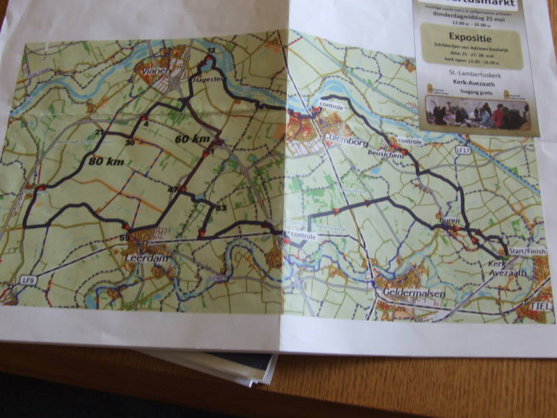 Van Hagestein via Zijderveld en Meerkerk naar Schoonrewoerd langs de rommelmarkt. Van Schoonrewoerd naar Mariënwaard en langs de A2 naar de een na laatste stempelpost bij pannenkoekenhuis De Stapelbakker en vervolgens via Buren, richting Erichem en vervolgens naar Kerk-Avezaath. Hier laten we onze kaart weer stempelen drinken wat in de buurthuis en gaan vervolgens weer naar de camping. Tegen 14.00 uur waren we weer op de camping, fantastische route, de route was geen 60 km maar 65 km totaal vandaag 79 km.