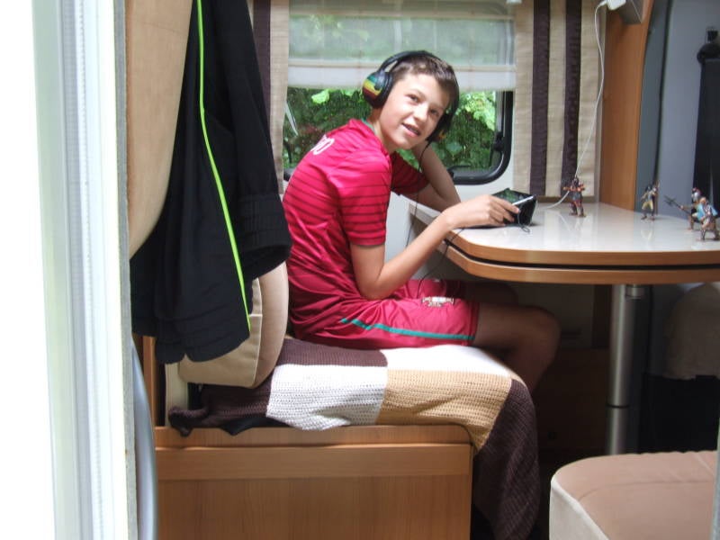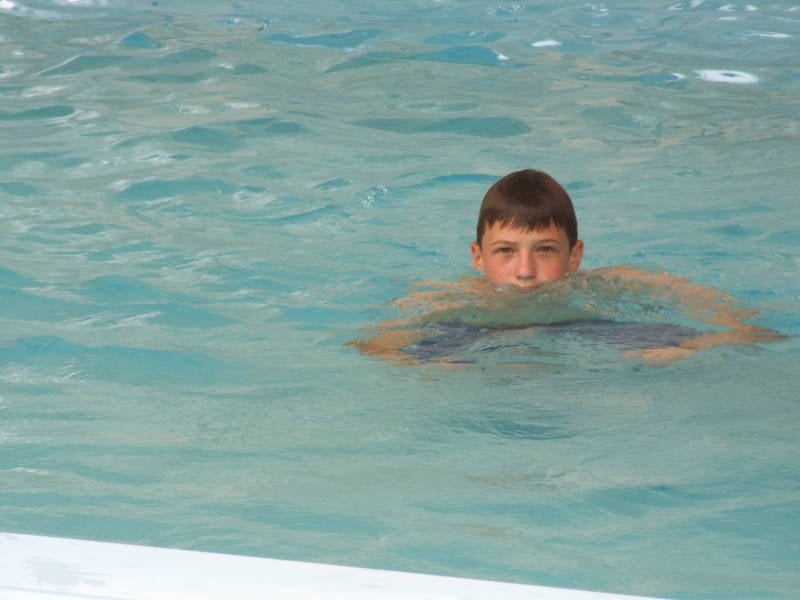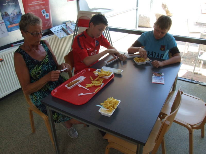 Zondagmiddag 9 juli gaat Sem nog even achter zijn tablet terwijl Finn nog een duik neemt in het zwembad en tegen 13.00 uur nemen we met zijn allen een patatje met snack en rijden dan tegen 15.00 uur weer richting huis om weer op tijd weer thuis te zijn voor de thuis komst van onze dochter en schoonzoon. Altijd weer leuk om met die kereltjes weg te gaan.