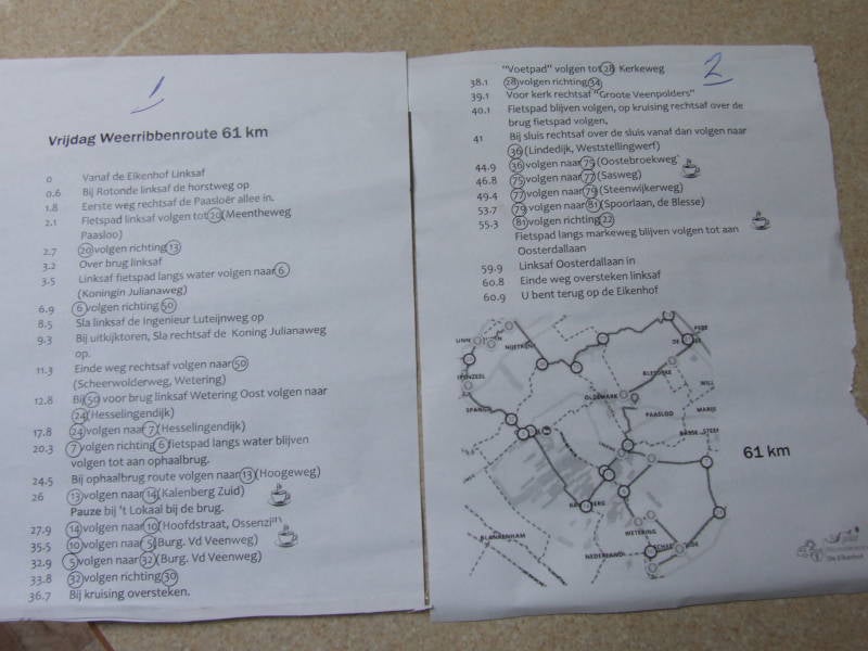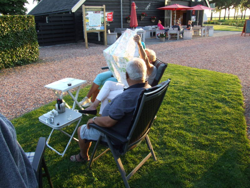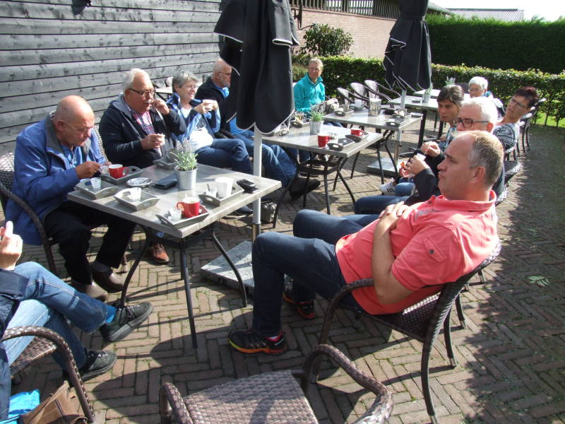Maandag 28 aug vertrekken we tegen een uur of 10 en rijden vandaag de Wiedentocht over een afstand van 60 km. We gaan vanaf de camping linksaf richting Baarloo, Blokzijl richting Sint Jansklooster om vervolgens koffie te gaan drinken bij restaurant de Otterskooi.