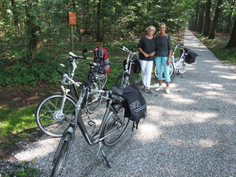 Woensdag 30 aug 2017 geen fietsroute maar een rustdag en dat was maar goed ook want deze dag was een hele slechte dag regen en nog eens regen. Donderdag 31 aug 2017 opstaan met regen, tegen een uur of 11 klaarde het op en vertrokken we als nog op de fiets voor de Zuiderzeebodemroute van 63 km. we gaan vanaf de camping linksaf richting Motorkade, Worstdijk, Kuinre door het Kuinderbos. In het Kuinderbos stoppen we even en drinken een beetje water.