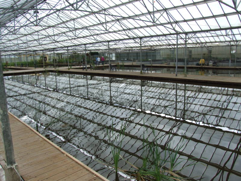 Van hier uit vervolgen we weer onze weg door het Kuinderbos richting Luttelgeest waar we bij de ANWB paddestoel 24765 linksaf moeten naar de oosterringweg waar onze koffie pauze is bij de Orchideënwinkel en forellen kwekerij. Diverse bazuins zijn hier aanwezig voor de groei van de forellen. Tegen betaling mag met hier ook vissen en de gevangen vis mee nemen naar huis. Na de koffie volgen we de provinciale weg weer richting Willemsoord en vervolgens weer naar de camping. Geen regen meer gehad vandaag en heerlijk fiets weer.
