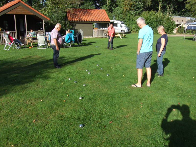 Bij terug komst op de camping prachtig mooi weer, we nemen met zijn allen een borrel en doen nog een potje JeudeBoule. Tegen 18.00 uur nemen we weer de fiets voor de diner in Schaijk, ook dit keer prima verzorgd.